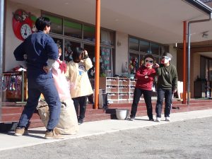 子どもたちは 必死に鬼に豆をぶつけていました!!